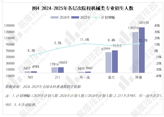 机械类专业招生打算人数逐年添加,从2024-2025年招生打算增幅来看,但持久成长需面对就业地区差别大、职业成长天花板较着、行业转型压力加剧的问题。各校环境有所分歧。